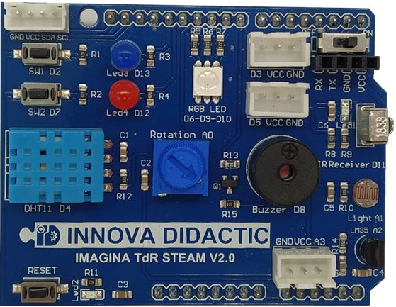 En esta web vamos a encontrar contenidos que resultarán útiles para iniciarnos en la placa Imagina TdR STEAM, una shield con formato UNO muy versatil desarrollada por el equipo de INNOVA DIDACTIC.