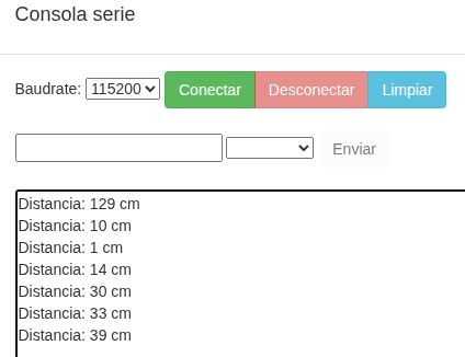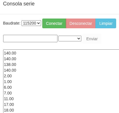 8. Ve a “Consola”, arriba a la derecha, y haz clic en “Conectar” para ver las medidas en la consola del puerto-serie.