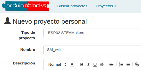 2. Ve a ArduinoBlocks, inicia sesión y comienza un nuevo proyecto del tipo “ESP32 STEAMakers”: