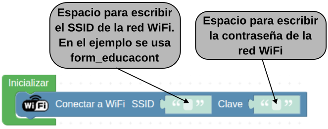 3. En la categoria de "Comunicaciones/WiFi/IoT" busca "Conectar a WiFi" y colocalo en "Inicializar".