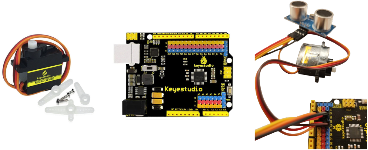 También conecta el servomotor en uno de los pines GVS de la hilera de conexiones de la Keyestudio UNO, por ejemplo el pin 4.