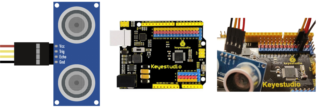 Es necesario que el cable negro (GND) del sensor coincida con el pin negro (GND) de la placa Keyestudio UNO para que la conexión sea correcta.