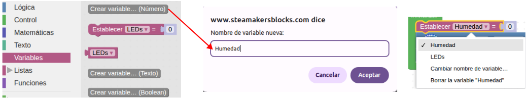 Lo primero de todo, crea una variable denominada Humedad desde el menú "Variables".