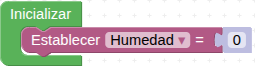 Coloca el bloque de programación "Establecer Humedad" de la categoría "Variables" dentro del bloque "Inicializar" para empezar el programa con un valor de la variable "0".