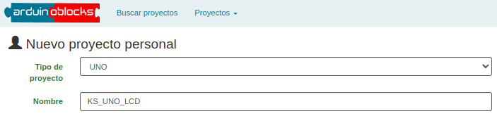 3. Ve a ArduinoBlocks, inicia sesión y comienza un nuevo proyecto del tipo “UNO”: