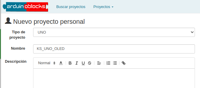 3. Ve a ArduinoBlocks, inicia sesión y comienza un nuevo proyecto del tipo “UNO”: