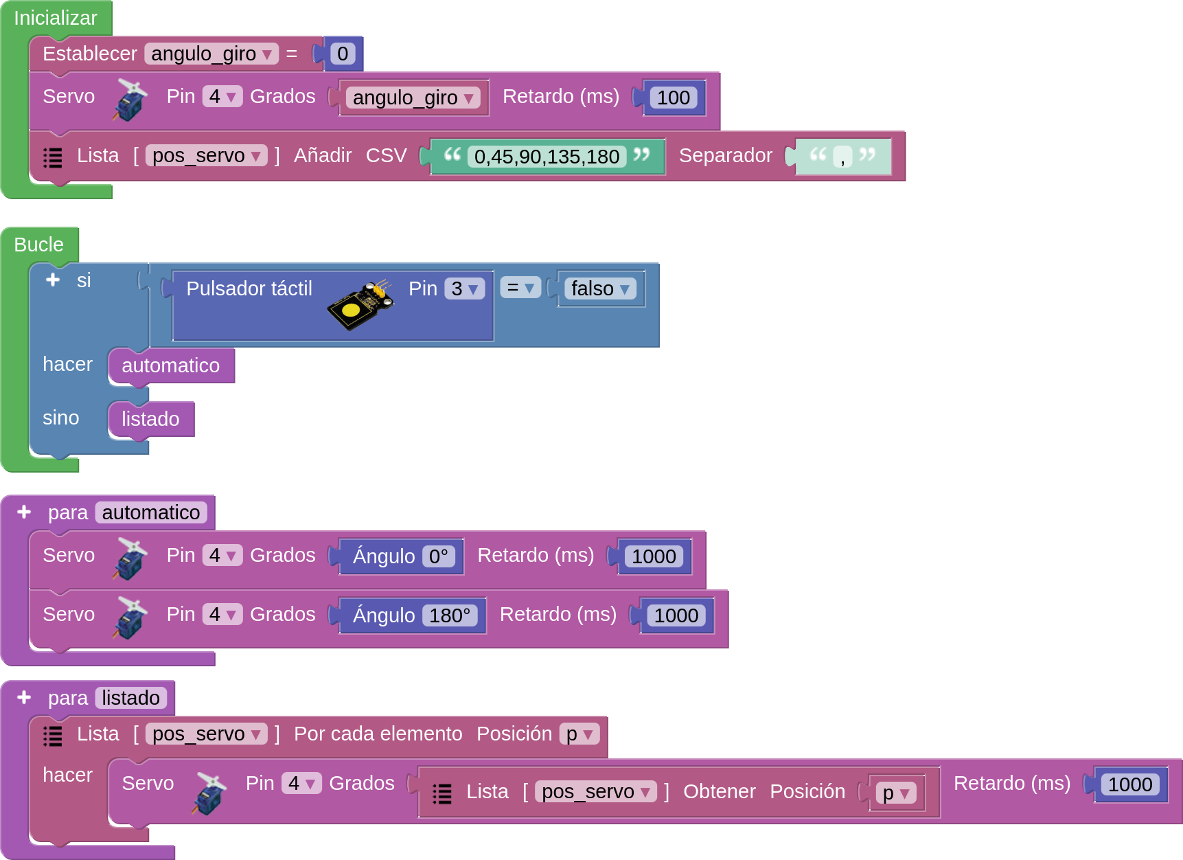 Antes de nada se recomienda repasar los conceptos dados en Control de un servomotor y el uso de las listas de datos.