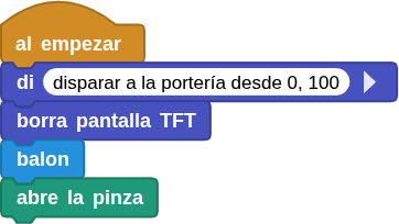 balon, que dibuja el balón y muestra el texto “Hora de jugar futbol”. - Abre la pinza o gripper del módulo con servomotor acoplado al robot (la pinza) para asegurarse de que está preparado.