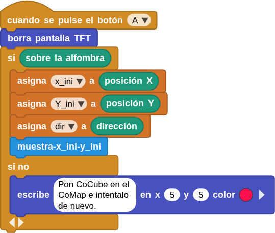 Si el CoCube está correctamente ubicado sobre el tapete de juego ("sobre la alfombra"):