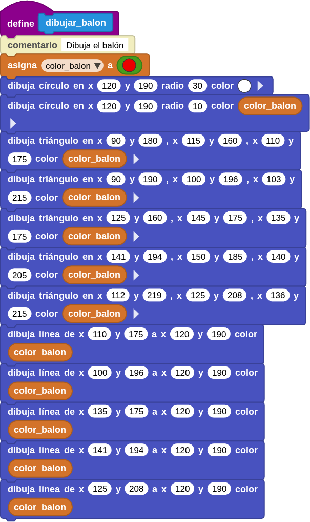 - Llama a dibujar_balon para representar gráficamente un balón.