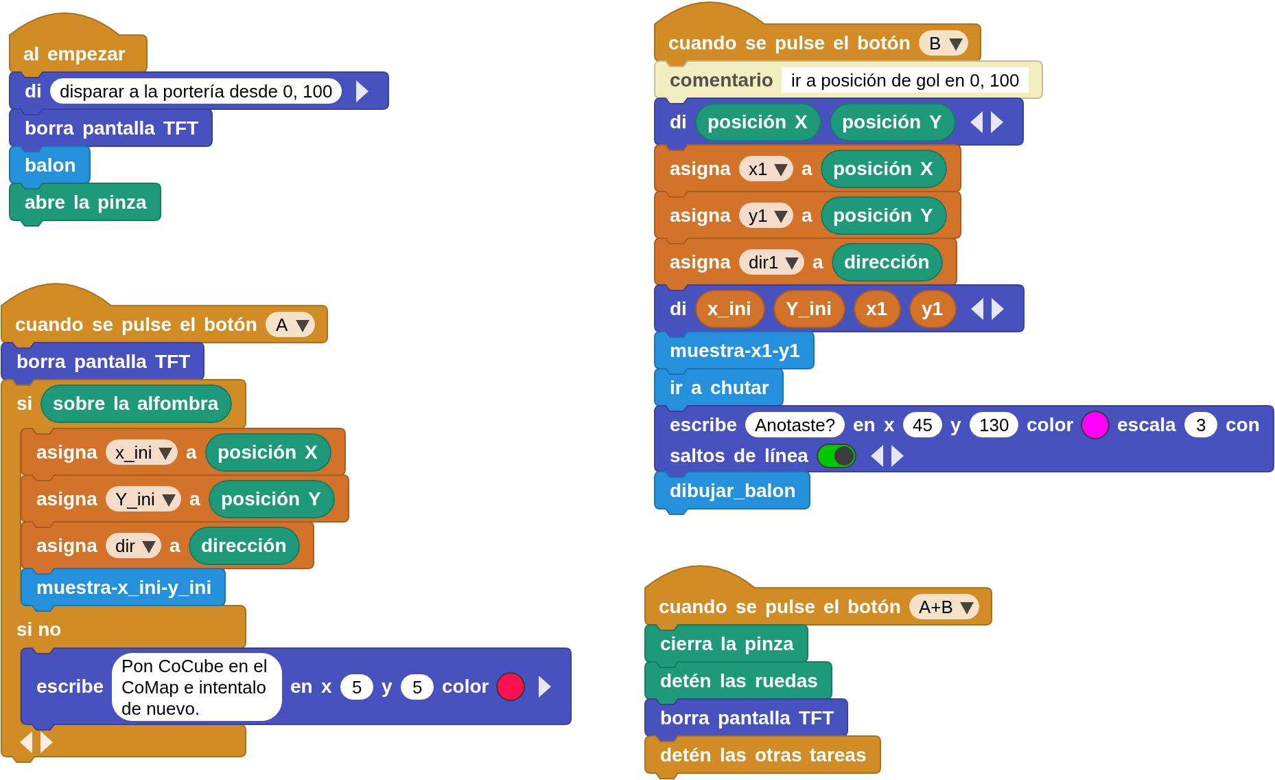 | Función ir a chutar | Controla los movimientos del robot para simular un disparo. |