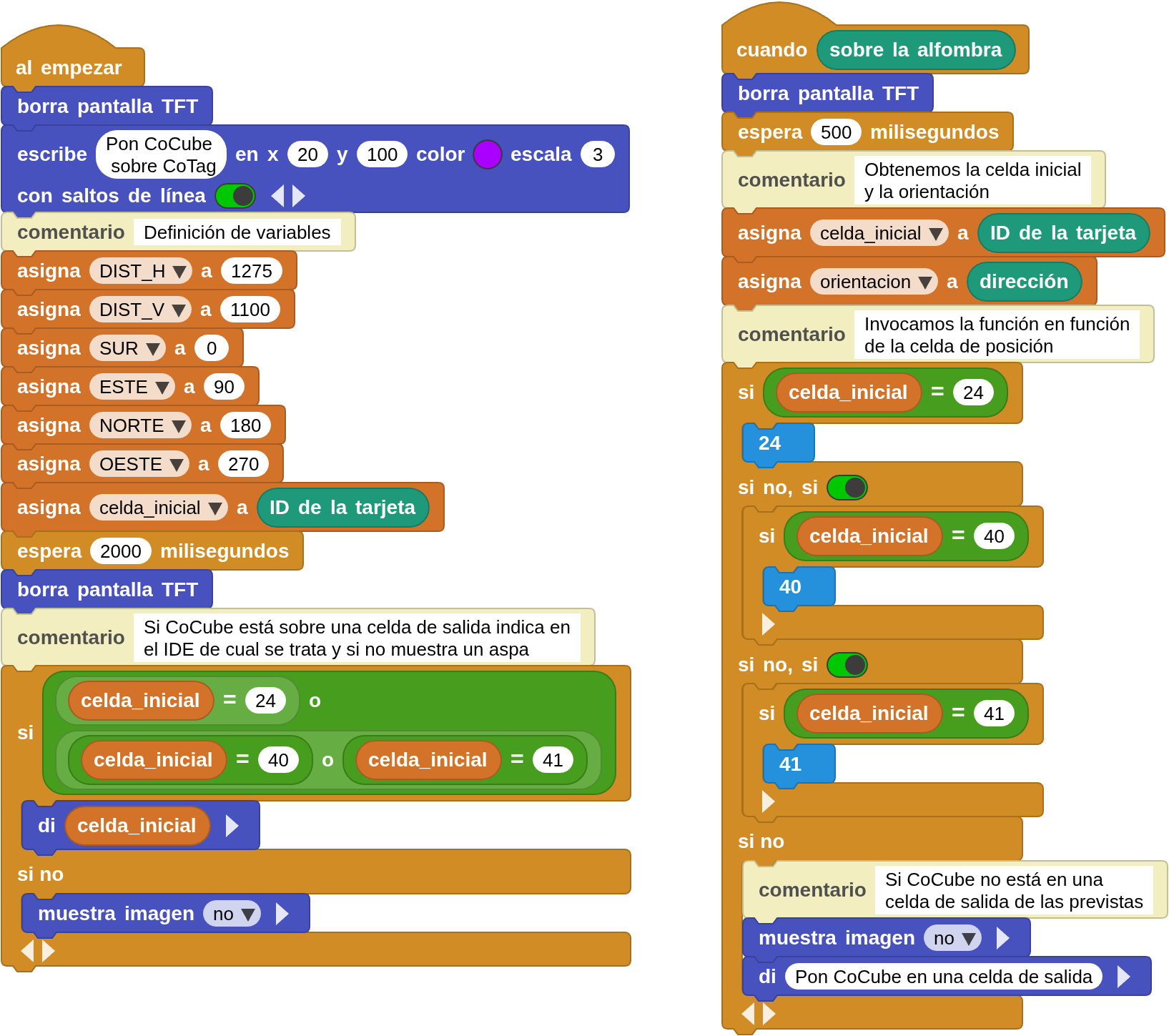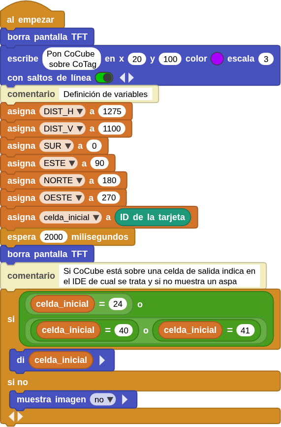 - CoCube identifica cada casilla por su número (el robot debe mostrar el ID de la casilla por la que está pasando).