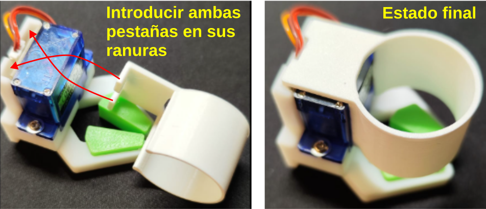 El dispositivo anterior se acopla a la pinza con servo muy facilmente como se observa en la imagen siguiente: