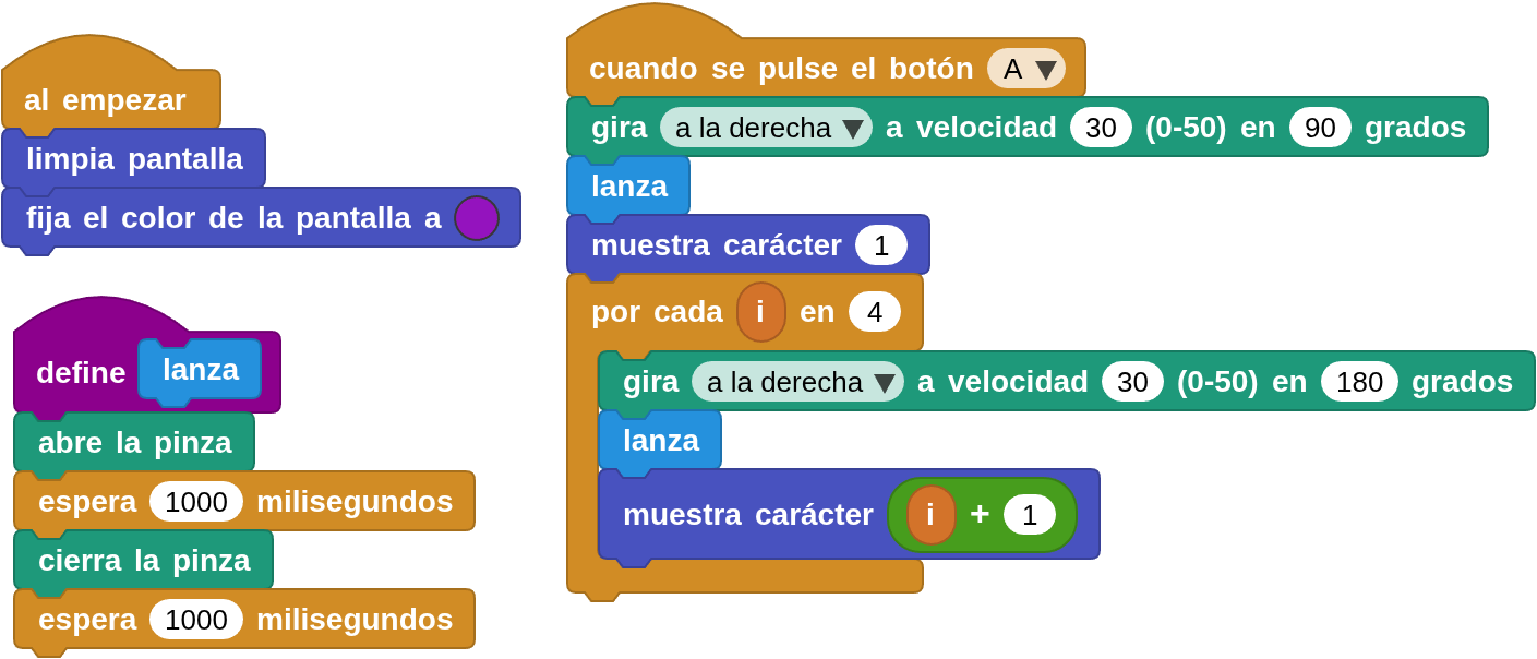 Los incrementos de ángulo son en sentido horario (ej. de 0° a 90° gira a la derecha).