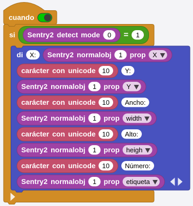 ④ Ahora vamos a utilizar el bloque "Sentry2 detect mode", para determinar si hay resultado en la detección.