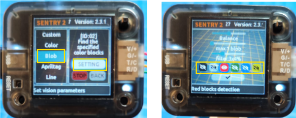 Ten en cuenta que debes configurar los parámetros de reconocimiento de bloques de color de la cámara Sentry2 para cambiar el color rojo por defecto que trae de fábrica al color azul.