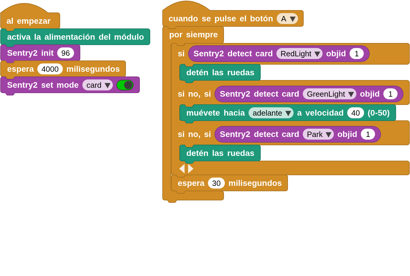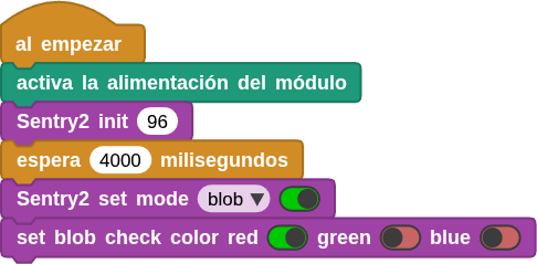 Antes de poder usar Sentry2, debes inicializarla mediante el bloque de la imagen, que por lo general, se coloca debajo de un bloque tipo sombrero "al empezar".