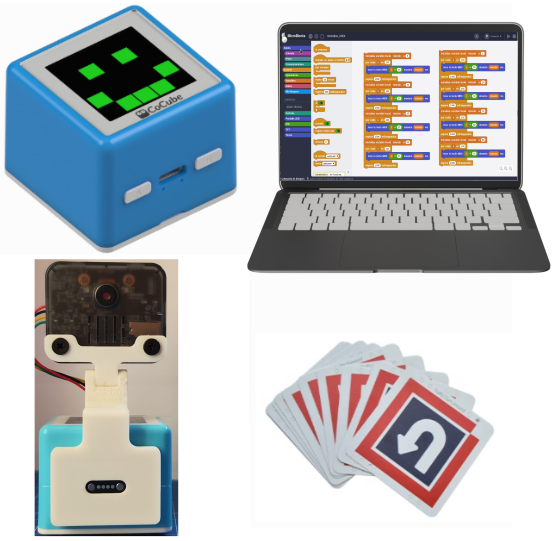 Programa el robot CoCube para que reconozca las señales de tráfico (tarjetas que acompañan al kit) y realice automáticamente las acciones correspondientes, creando así un entorno de pruebas inteligente para el tráfico.
