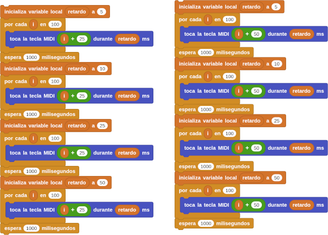 Arrastra varios bloques y modifica la frecuencia y la duración de cada uno para completar una melodia.