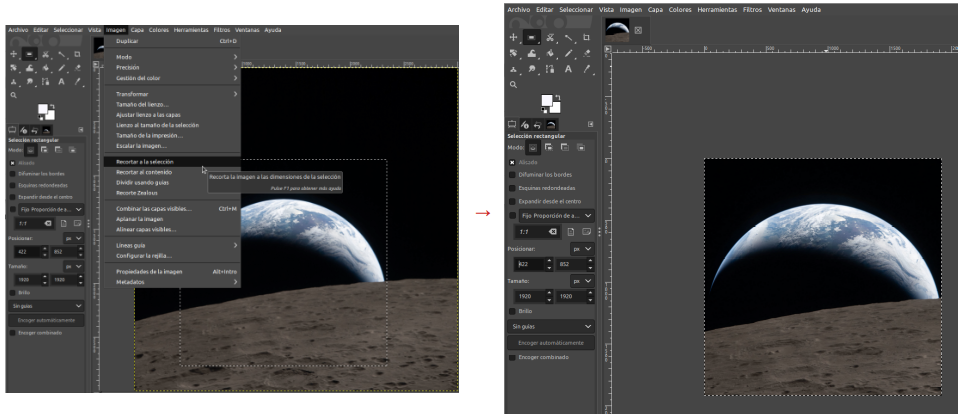 En GIMP se pueden recortar imágenes de dos maneras: