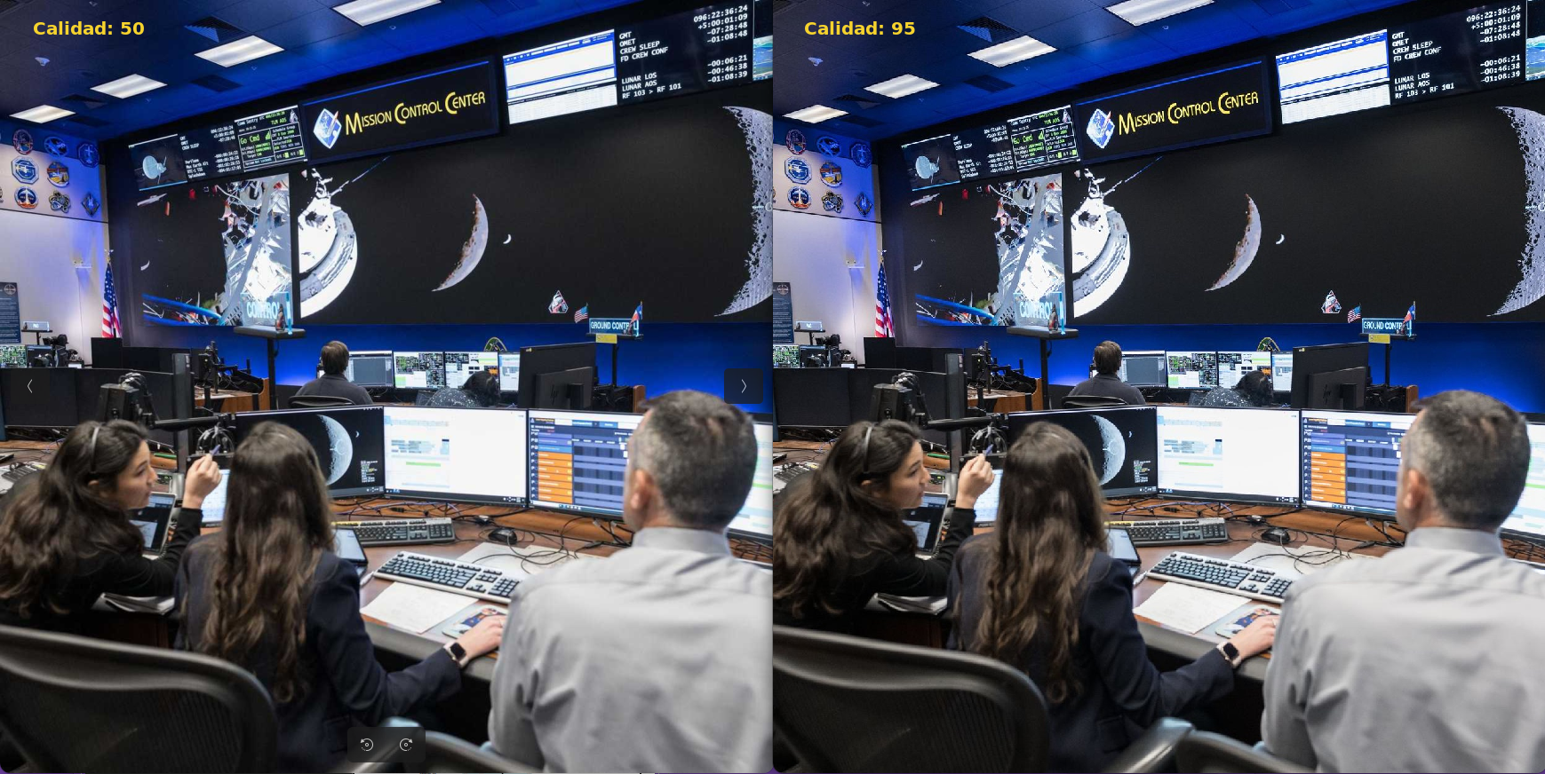 - Calidad. Tiene un rango de 0 a 100. Un valor entre 80 y 90 produce excelentes resultados, aunque en algunos casos esta calidad se puede ajustar a valores diferentes. En la imagen siguiente, la imagen de la izquierda está exportada a 50 y la de la derecha a 95.