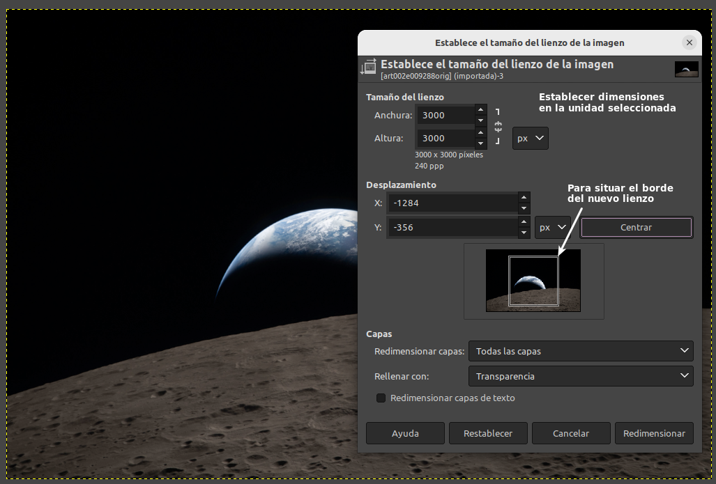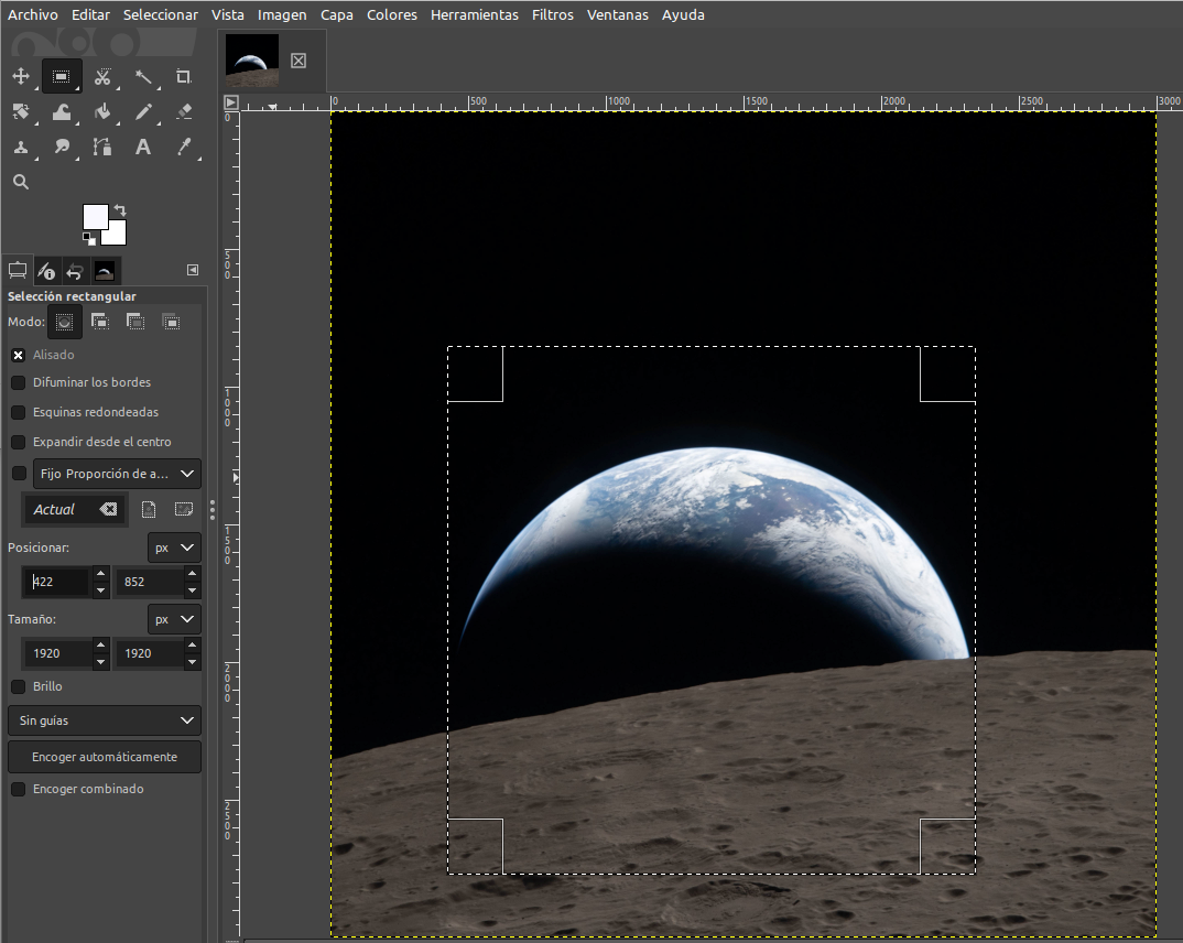 Las siguientes explicaciones se dan para el programa GIMP, el Software Libre de manipulación de imágenes de GNU que empleo habitualmente. Se utilizarán las imágenes art002e009288 y jsc2026e020490 descargadas de Artemis II Lunar Flyby dentro de los recursos multimedia Artemis II de la NASA.