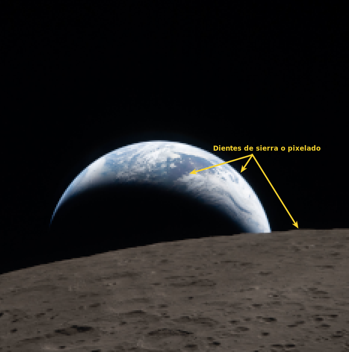 - Ninguno. El color de cada píxel se copia desde su píxel vecino más cercano en la imagen original. Es el método más rápido pero provoca un efecto “diente de sierra” o pixelado y una imagen de peor calidad.