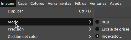 En el submenú “Modo” del menú “Imagen” se puede encontrar el comando junto con otros dos para cambiar el modo de color de la imagen.