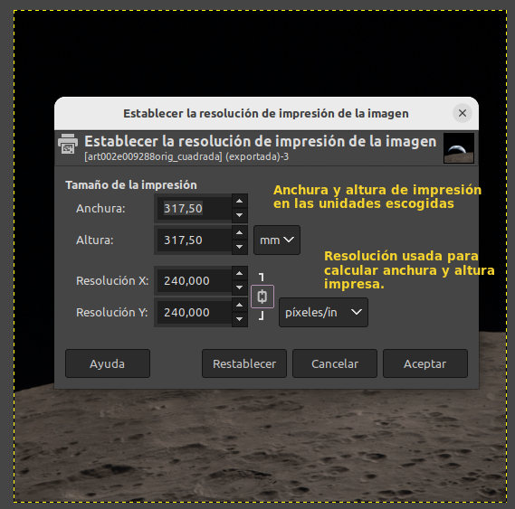 Tamaño de la impresión en GIMP¶