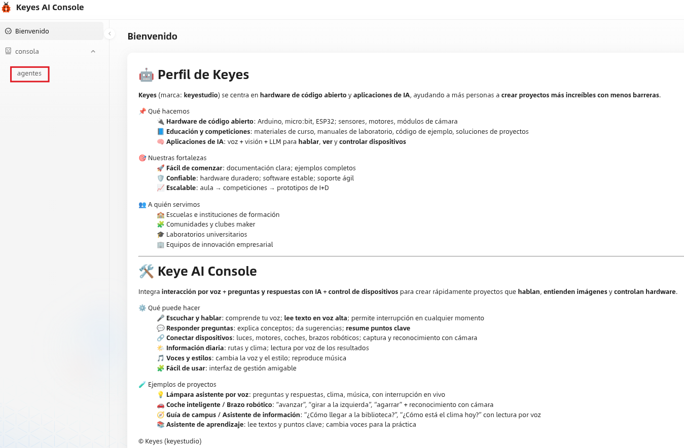 - Plataforma ai.keyestudio.com. Permite crear y gestionar agentes de inteligencia artificial.