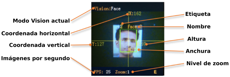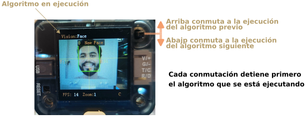 Mueve el joystick hacia arriba o hacia abajo para activar o desactivar un algoritmo de visión. El algoritmo anterior se detendrá automáticamente antes de que se inicie uno nuevo.