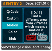 Cuando el Sentry2 permanece inmóvil, el algoritmo compara las diferencias de píxeles entre fotogramas consecutivos para determinar si alguna región de la imagen ha cambiado. Si se detectan cambios, se asume que hay un objeto en movimiento en el campo de visión, y se devolverán las coordenadas del objeto en movimiento. El algoritmo sólo devuelve un resultado de detección.