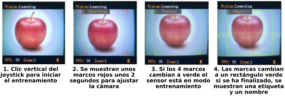 | 5 | Learning \(^*\) | Entrenar objetos y clasificarlos. Hasta 25 datos. No requiere ordenador |