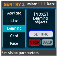 - Selecciona un algoritmo de la lista de la parte izquierda de la página de Configuración de Visión, pulsa brevemente el botón del joystick.