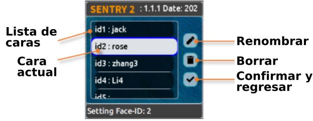 | 7 | Face \(^*\) | Detección y reconocimiento facial, compatible con detección de máscaras, puede almacenar datos de 15 modelos |