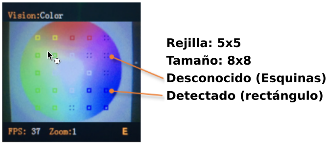 En la pantalla aparecerá un recuadro rectangular que identifica el color, y un recuadro de cuatro esquinas que identifica el color desconocido.