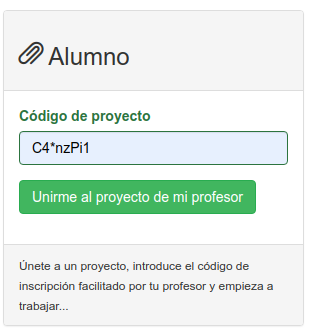 Permite que nos unamos a un proyecto planteado por el profesor. Nosotros realizaremos el proyecto como si de un proyecto personal se tratara, pero el profesor podrá supervisar y valorar nuestro trabajo.